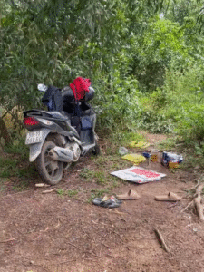 Qua xác minh, chiếc xe máy đứng tên Nguyễn Văn Hóa, ngụ huyện Hóc Môn (cũ), TPHCM. Bên cạnh xe, công an còn phát hiện một đồng hồ, 10 vỏ lon bia cùng một số vật dụng liên quan.